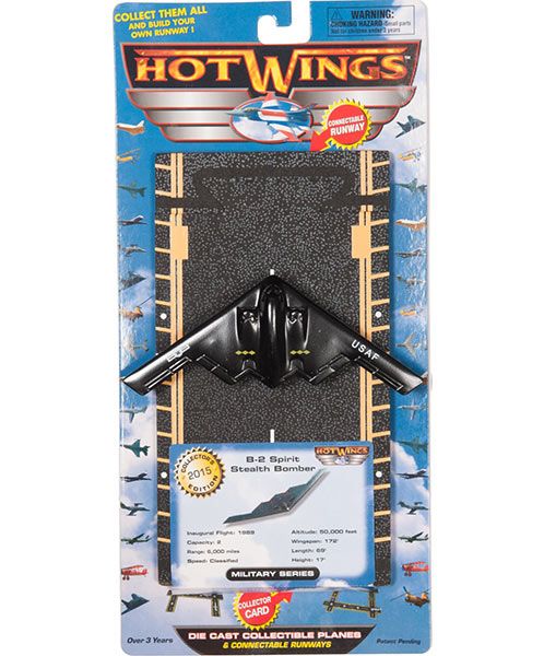 The B-2 Stealth is a diecast metal airplane that measures approximately 2.25″x5″. The diecast Stealth toy comes with a flexible, modular runway piece that you can use to create your own airport.