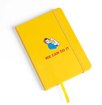 This yellow notebook features Rosie The Riveter with “We Can Do It” phrase in front and Boeing logo on the back.