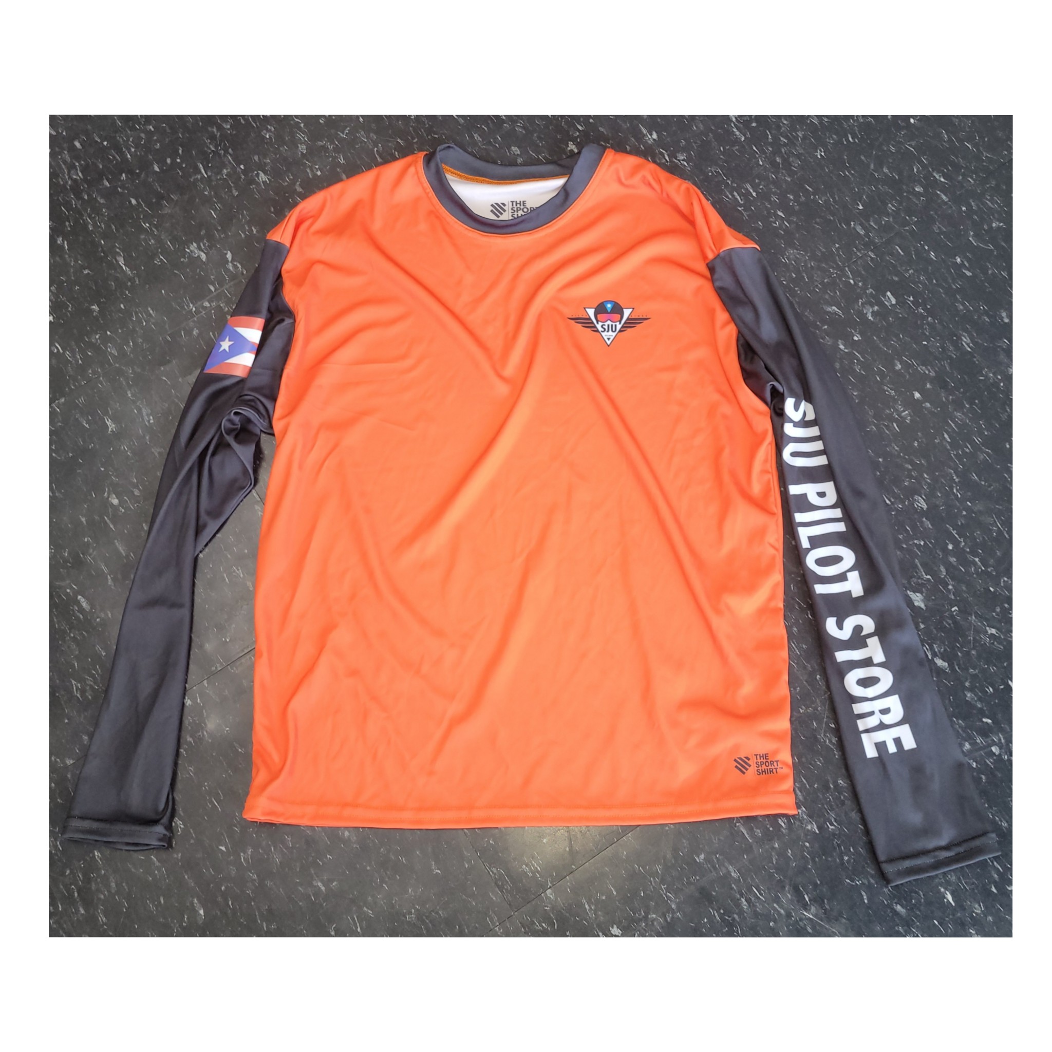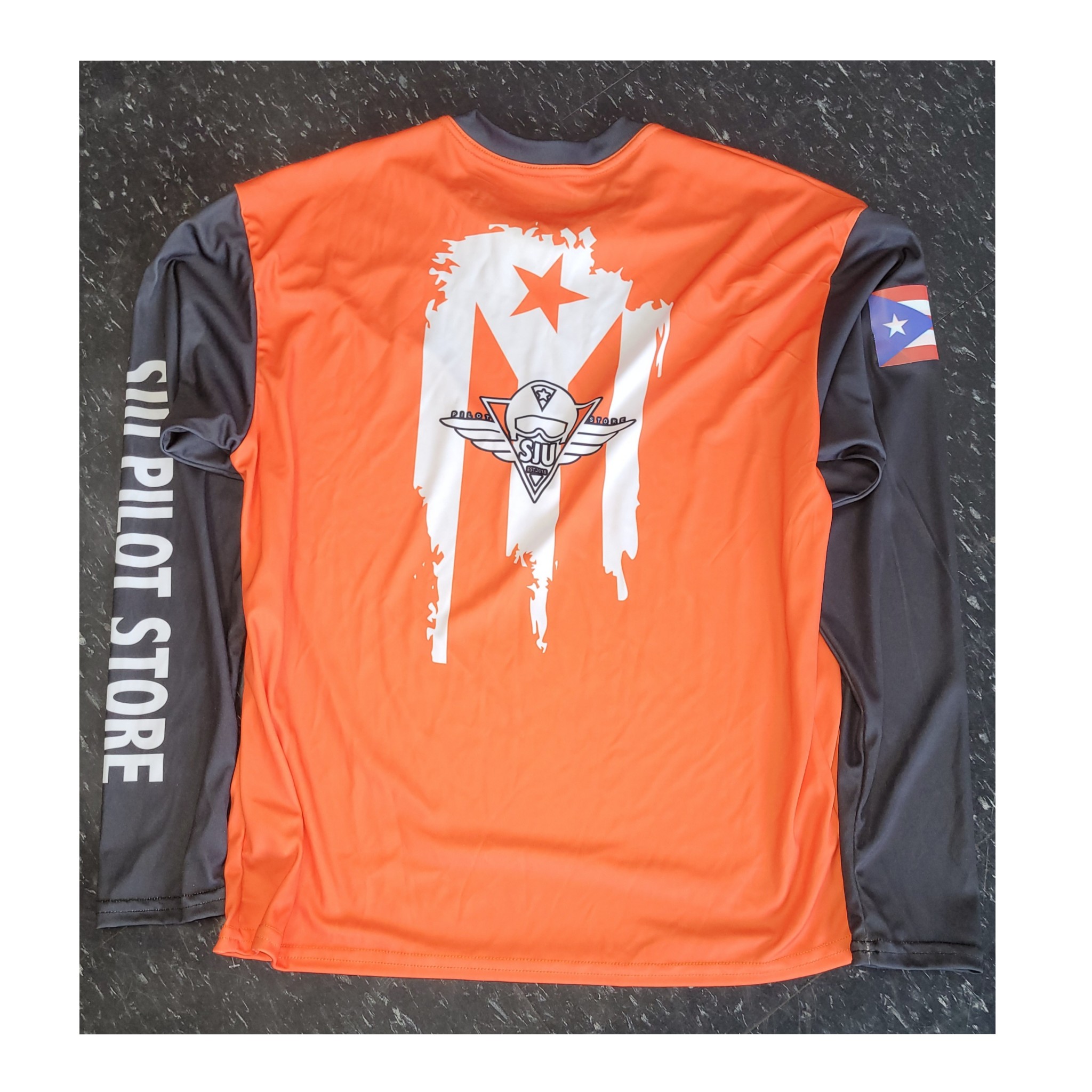 We came up with this design thinking in the outside climate conditions that usually come with the profession in the aviation industry. Whether you are a private pilot, mechanic, Ramp agent, or just decided to fly to a near beach you need a fresh shirt that make you feel comfortable. This shirt dries fast and has our dynamic logo on the left side, and on the back Puerto Rico flag with SJU Pilot Store logo as well. On the left sleeve you will find our store name and in the right sleeve Puerto Rico flag full color.