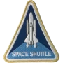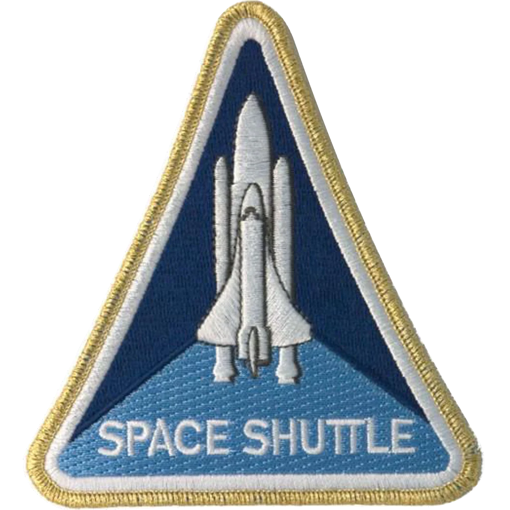 Celebrate space exploration with this embroidered Space Shuttle Patch, featuring a bold triangular design with a white shuttle launch against a deep blue background. Finished with a gold border, this patch is perfect for jackets, flight suits, bags, or display collections.